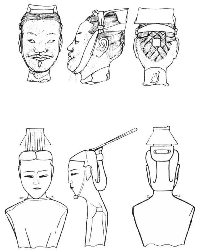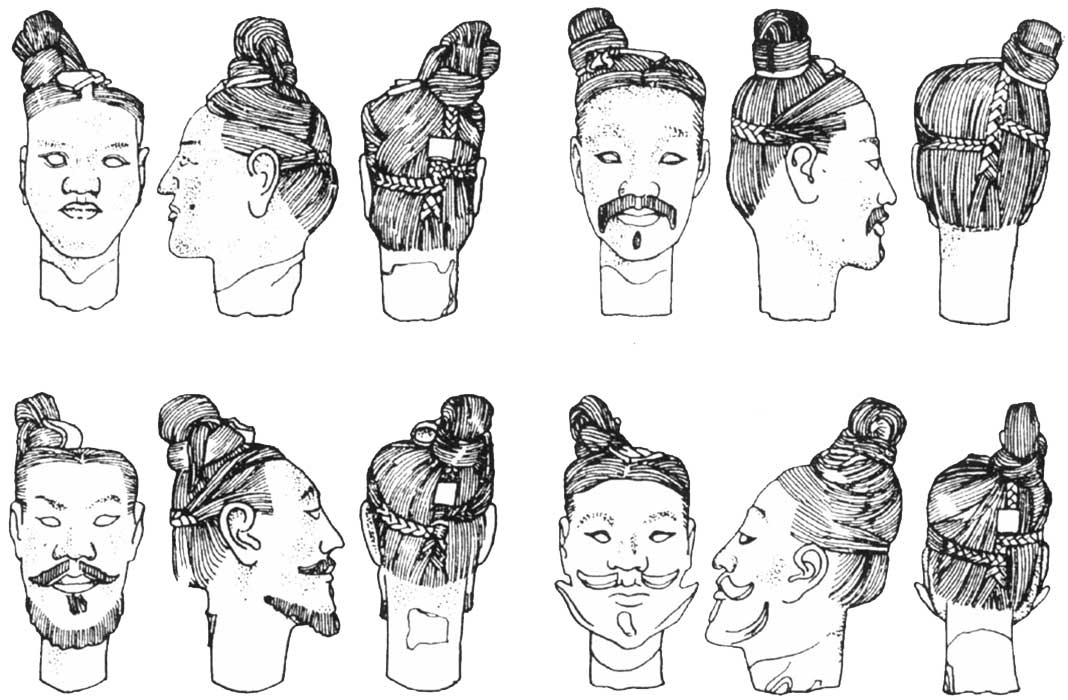 Среди воинов первого Циньского императора преобладали два типа причесок: