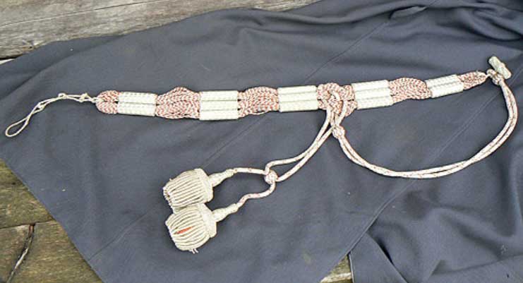 • пояс из серебряных шнурков с черным и оранжевым шелком и с серебряными гомбами;