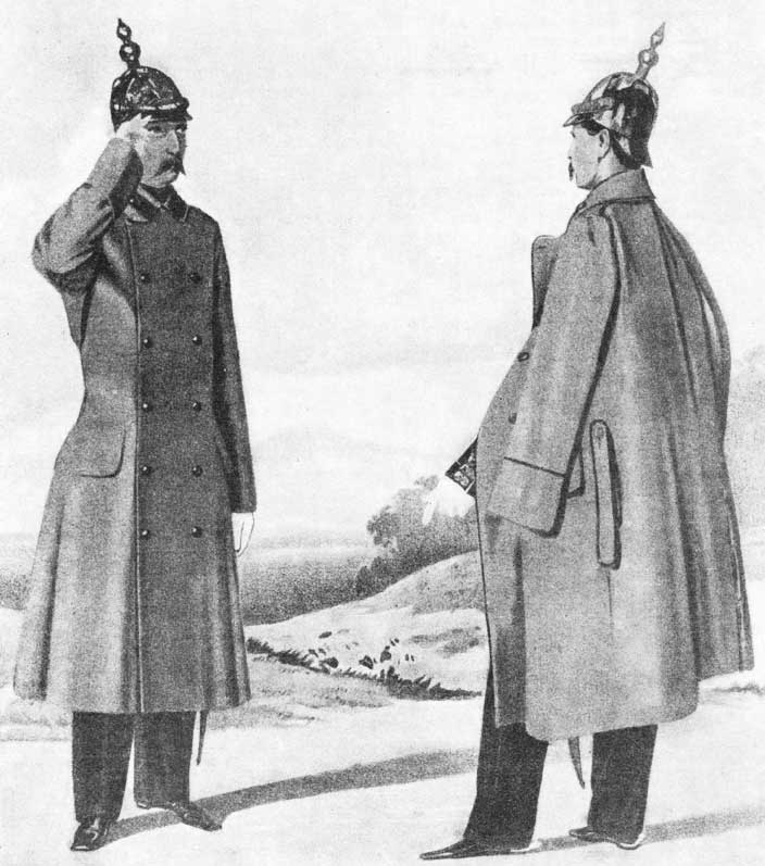 • полы не доходят до земли на 6 вершков (26,7 см) — они длиннее пехотных, чтобы лучше закрывать ноги на коне;