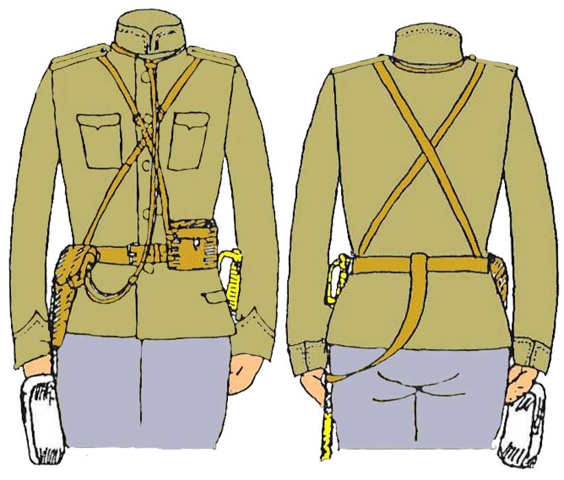 У нижних чинов шнуры кушака шерстяные оранжевые или белые по прибору, варворки по цвету полка.