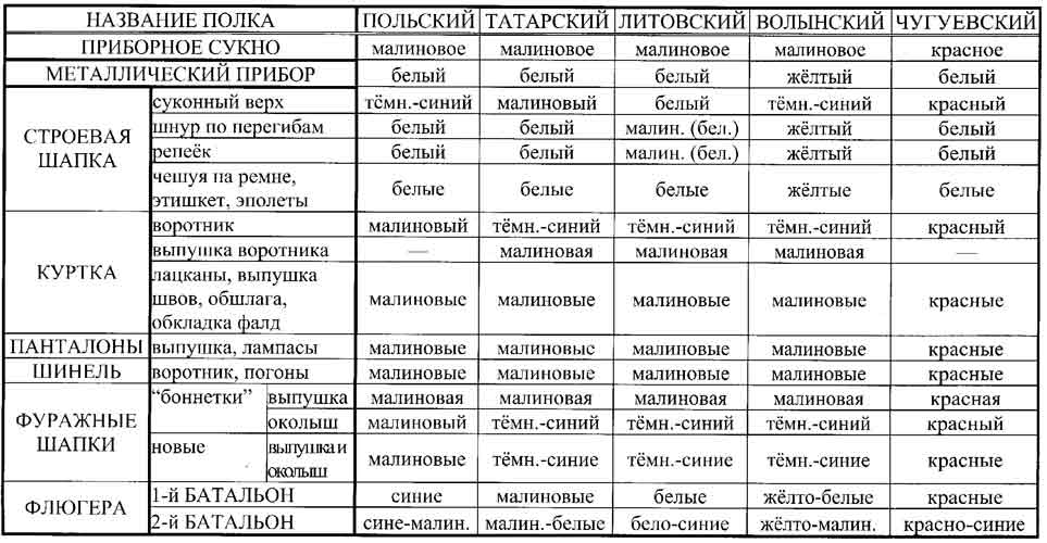 | Обмундирование нижних чинов уланских полков русской армии: | |